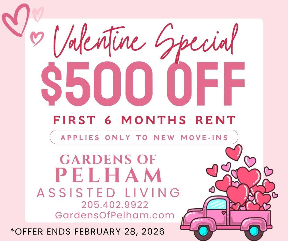 Located only minutes off Interstate 65 near the Oak Mountain State Park and convenient to local restaurants and retail stores, the Gardens of Pelham offers a nurturing environment for seniors which enjoy life to the fullest. From our cozy apartments and spacious common areas to our daily exercise program and friendly caregivers, you will find a carefree lifestyle at the Gardens of Pelham. Everyone who calls our assisted living home receives individual care, personalized assistance and exceptional service.